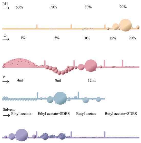 - Moisture content is a crucial factor in determining the extent of whitening. Variations in influencing factors lead to increased moisture content in the air, a decrease in the dew point temperature at the gas–liquid interface, moisture condensation on the film surface, and pore formation upon evaporation. This surface roughness causes optical heterogeneity, resulting in whitening.
