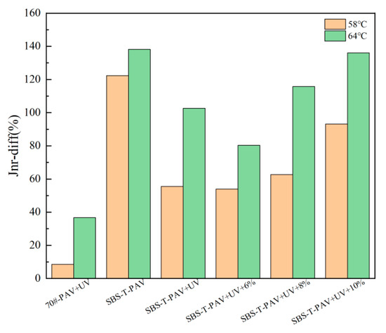 Jnr-diff values of asphalt after various aging processes.