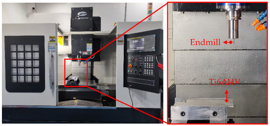 TiAlN/TiSiN and TiAlN/TiSiN/ZrN coated cemented carbide endmills were prepared. The geometric parameters of the endmills are shown in Table 5. The milling experiment is shown in Figure 3. The milling experiment was carried out using a CAMPIOCNV-900 high-speed machine made by Campio Precision Machinery Co., Ltd., Shanghai, China and water-based emulsion was used for cooling. The ratio of cutting fluid to water was 1:6. Milling experimental parameters are shown in Table 6.