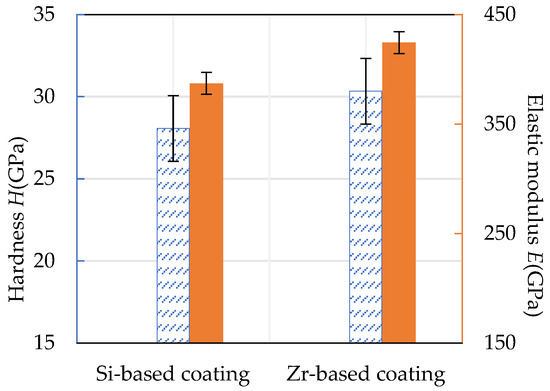 Hardness and elastic modulus of Si-based coating and Zr-based coating.