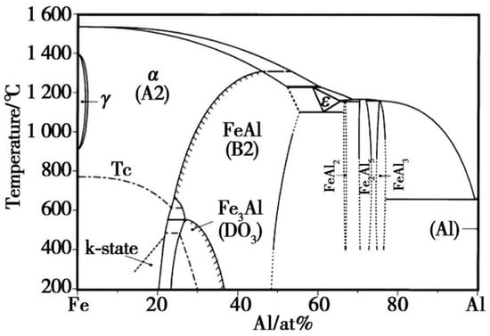 The Fe-Al alloy layer has excellent resistance to high temperature and corrosion and has good suitability and wettability with the Al2O3 coating. Moreover, the alloy layer can improve the bonding strength between the metal substrate and the coating. The Fe-Al/Al2O3 coating can be prepared on the steel substrate through hot-dip aluminium plating and anodic oxidation []. No interfacial phase is generated between the two contact surfaces, no chemical reaction is generated, and the interfacial bonding is good, so it can be used as a transition layer between the steel substrate and the Al2O3 coating []. Huang et al. prepared Fe-Al/Al2O3 composite hydrogen-blocking coating on 316L stainless steel substrate; the Fe-Al layer effectively mitigated the thermal mismatch between the Al2O3 coating and the substrate [].