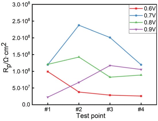 The polarization resistance of the coating at each test point under different applied voltages.