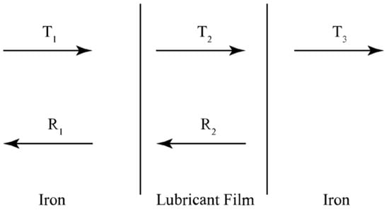 where represents the angular frequency of the sound wave, the oil film thickness, and the speed of sound in the oil film. When the oil film thickness is an integer multiple of (where is the wavelength), standing waves will form due to the superposition resonance of incident and reflected waves at the middle position of the oil film. Standing waves lead to the generation of resonance phenomena [33], and resonance occurs when the frequency of the ultrasonic wave is equal to the natural frequency of the oil film. The expression for the resonant angular frequency is: