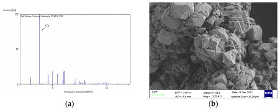 (a) XRD analysis with a scanning range of 5–90°, speed of 5°/min, and continuous scanning at 0.02/s. (b) Scanning electron microscopy observation.
