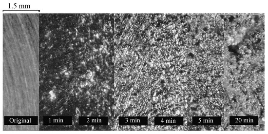 - Soyama, H.; Kikuchi, T.; Nishikawa, M.; Takakuwa, O. Introduction of compressive residual stress into stainless steel by employing a cavitating jet in air. Surf. Coat. Technol. 2011, 205, 3167–3174. [Google Scholar] [CrossRef]