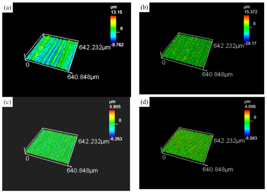Three-dimensional scanning of alloy surface after grinding with different mesh sandpaper ((a): 180; (b): 600; (c): 1000; (d): 2000).