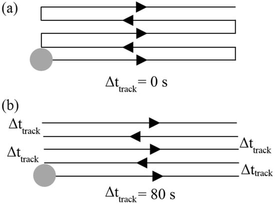Scan paths with different idle times: (a) continuous deposit; (b) deposit with a laser idle time of 80 s [103].