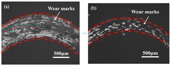 The whole picture of wear marks of samples treated by PN and Al-PN at 520 °C/4 h. (a) PN; (b) Al-PN.