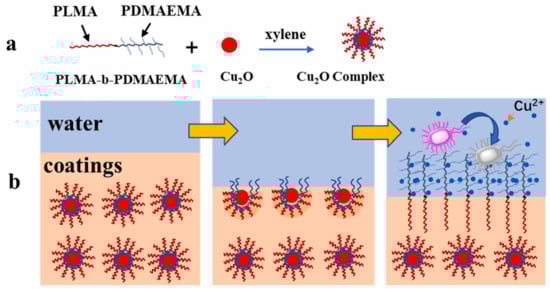 - Ding, T.; Xu, L.; Liu, X.; Ma, L.; Cui, Y.; Li, D.; Sun, X.; Gao, C. A Cu2O-based marine antifouling coating with controlled release of copper ion mediated by amphiphilic PLMA-b-PDMAEMA copolymers. Prog. Org. Coat. 2022, 170, 107003. [Google Scholar] [CrossRef]