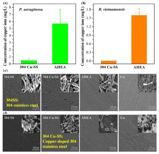 - Nan, L.; Yang, K. Effect of Cu addition on antibacterial property of type 200 stainless steel. Mater. Technol. 2016, 31, 44–47. [Google Scholar] [CrossRef]