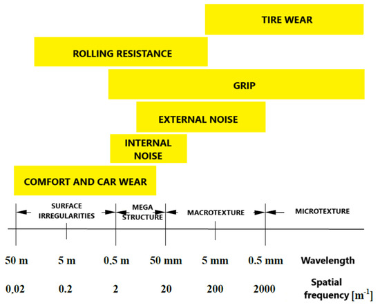 This article focuses on the last of these: the influence of texture. The figure below shows the texture sub-ranges along with their influence on the tire-road interaction (Figure 1).