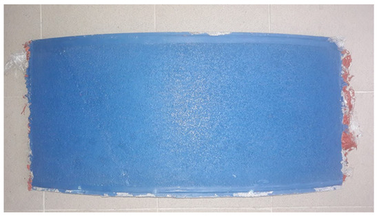 - The obtained elastic coating is next placed in the concave half of the mold (Figure 4). In the same part of the mold, gelcoat layers (the outer layer of the replica) and epoxy resin equalization layers are applied successively.