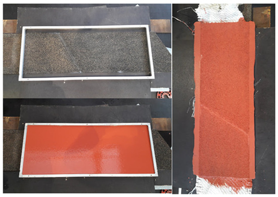 - First, a layer of silicone rubber is poured onto the original surface, which after hardening will constitute a negative representation of the road surface (Figure 5). This layer is additionally reinforced with a glass fiber mat.