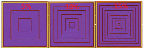 Figure 9. “Concentric” geometry of pavement replica fillings (5%, 10%, and 15% of infill density).