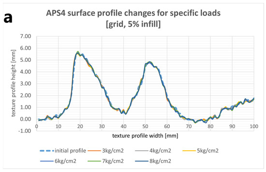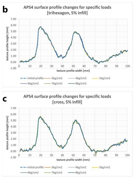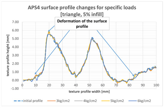 APS4 surface profile changes for specific loads (triangle, 5% infill).