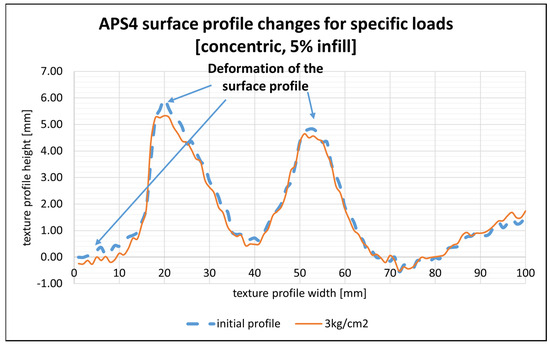 APS4 surface profile changes for specific loads (concentric, 5% infill).