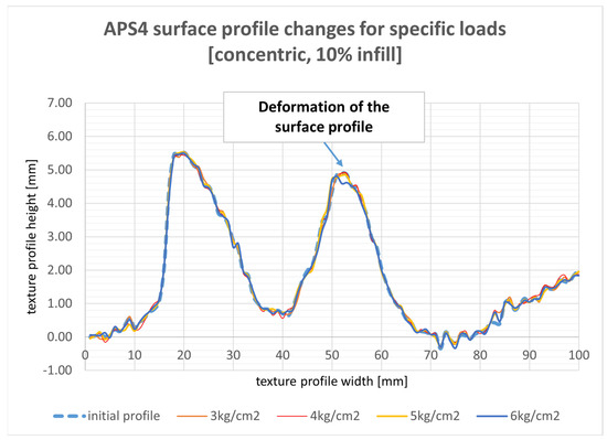 APS4 surface profile changes for specific loads (concentric, 10% infill).