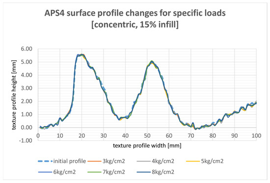 APS4 surface profile changes for specific loads (concentric, 15% infill).