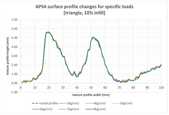 APS4 surface profile changes for specific loads (triangle, 10% infill).