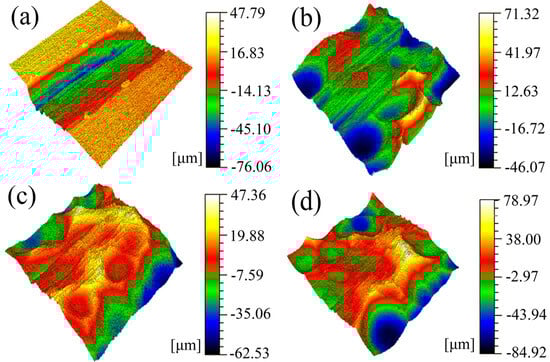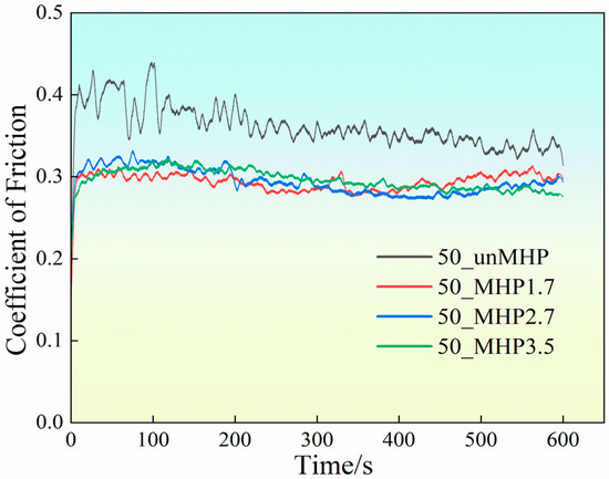 - MHP significantly enhanced the wear resistance of A7075. Compared to the control group, the peened samples exhibited lower coefficients of friction and wear volume, with the sample peened at 2.7 J (MHP2.7) having a wear volume of 7.67 × 10−4 mm3. Under a load of 50N, the wear traces on the surface of the peened samples were not apparent, especially in the case of the MHP2.7 sample, where the wear groove was above the average height and the damage to the surface from friction and wear was extremely limited.