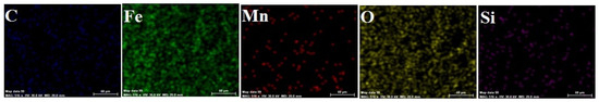 Fe, C, Mg, Mn, Si, O elements were detected, as seen in Figure 13.