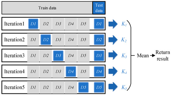Cross-validation was an important statistical technique for evaluating the performance of machine learning models and selecting the best parameters, and K-fold cross-validation was one of the most widely used methods [27]. The dataset was randomly divided into K subsets, where K-1 subsets were used to train the model, while the remaining one was used to evaluate the model performance. This process would be repeated K times, each time using a different subset as the validation set, and finally, the results of the K evaluations would be averaged to obtain the final performance metric.