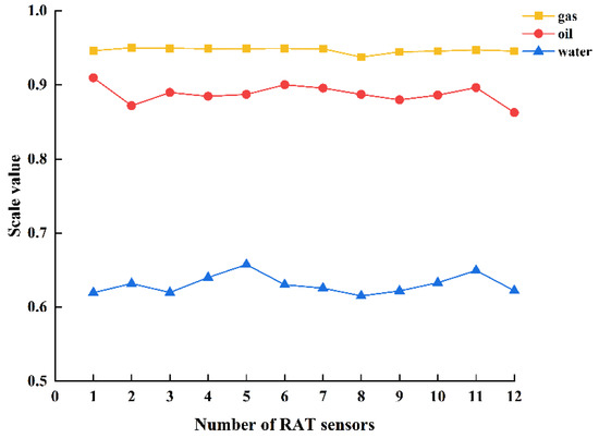 The response values of oil, gas, and water three-phase fluid of the RAT sensor.