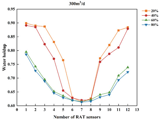 Local water holdup of RAT sensors when the total flow is 300 m3/d.