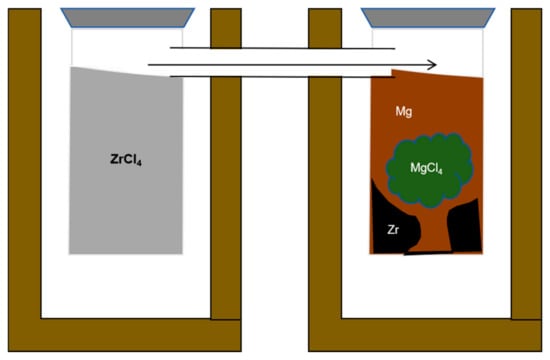 Schematic diagram of Zr sponge preparation by double tank reduction.