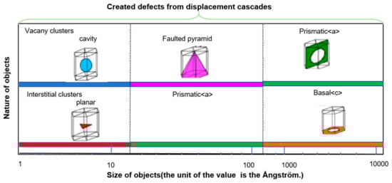 Schematic diagram of defects in neutron-irradiated Zr alloys.