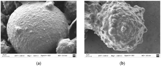 Scanning electron microscopy (SEM, Carl Zeiss AG, Oberkoche, Germany) was used to examine the microscopic morphology of the microcapsules and measure the thickness of the capsule shell. First, the microcapsule powder was dispersed in anhydrous ethanol and uniformly applied to the sample stage. The surface of the microcapsules was then clean by air-jetting with high-pressure gas. Finally, the microcapsules were observed, and the thickness of the capsule shell was quantified using SEM at magnification ranging from 200 to 60,000, as shown in Figure 2.