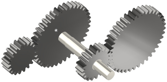 To compare the designs related to both types of material, a case study of an industrial problem is established. This corresponds to the design of a transmission system with gears with a power of 7.5 hp, a typical power of industrial systems (see Figure 1). The speed delivered by the motor is 1750, with a transmission ratio of 2 in both gear systems. Table 2 relates the properties of the materials used in the problem addressed. The mentioned properties are taken from [6,36,38,39,40,41].