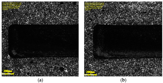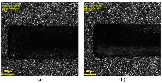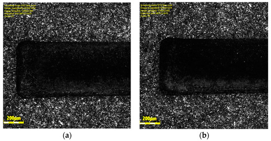 To further investigate the machining morphology, we analyzed the two-dimensional structure of the microgrooves using laser confocal microscopy, as shown in Figure 13.