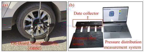 Noise test and contact stress test equipment: (a) On-Board Sound Intensity (OBSI) test method; (b) Pressure distribution measurement equipment.