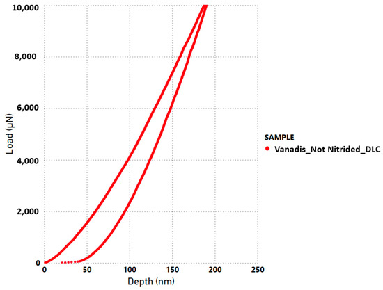 Nanoindentation curve for a specific final load of 10,000 µN in a Vanadis sample without nitriding.