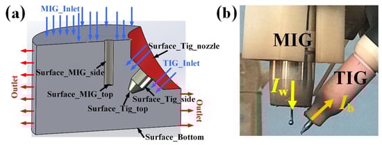 - Cui, X.F.; Chen, J.; Xia, C.Y.; Han, X.H.; Su, H.; Wu, C.S. The mechanism study of TIG-MIG hybrid welding process based on simulation. Vacuum 2023, 215, 112341. [Google Scholar] [CrossRef]