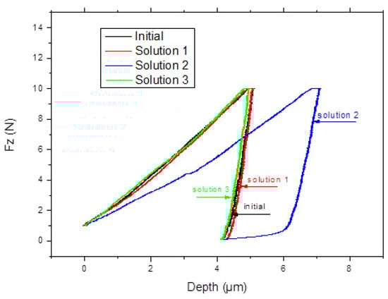 The microindentation tests were performed on a CETR UMT-2 Bruker tribometer, Ettlingen, Germany using a Rockwell-type indenter with a 120° diamond tip and a 200-micron radius. For each type of sample, 3 microindentations were created at a maximum pressing force of 10 N. Scratch tests were performed on the phosphated surface.