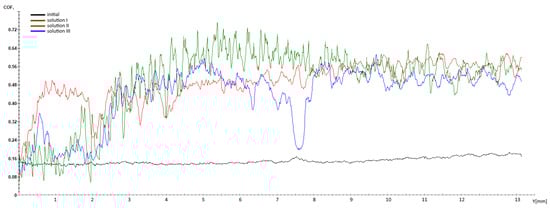 The values of the roughness profile expressed by Ra were between 0.14 µm (sample phosphated with solution I) and 1.37 µm (sample phosphated with solution III), which are all higher compared with the value of the metal substrate, and they can influence the coefficient of friction, microhardness, and wear resistance of the tested samples.