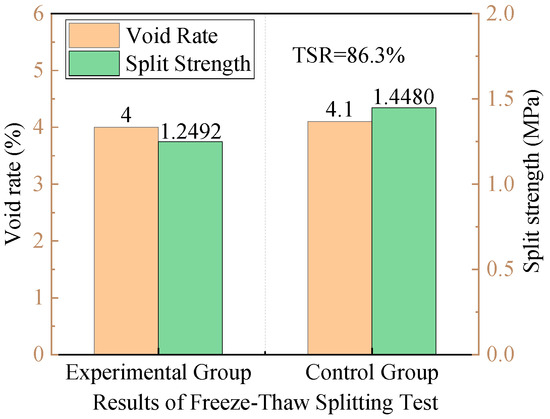 The freeze–thaw splitting test results for the mixture with a 5.2% overall asphalt content ratio.
