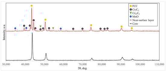 - The chemical composition analysis of the precipitates and X-ray diffraction confirmed that due to the carbon diffusion from the tool and chromium depletion of matrix grains, new Cr7C3- and Cr23C6-type chromium carbides were formed.