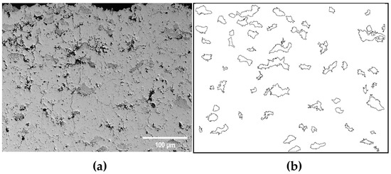 Image processing of microstructure of coating with a spraying angle of 90°: original coating image (a); graphic processing output image (b).