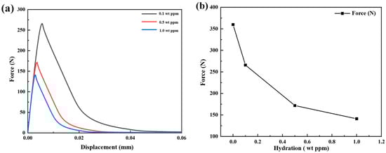 (a) Load–displacement curves; (b) changes in the elastic model at different hydrogen concentrations.