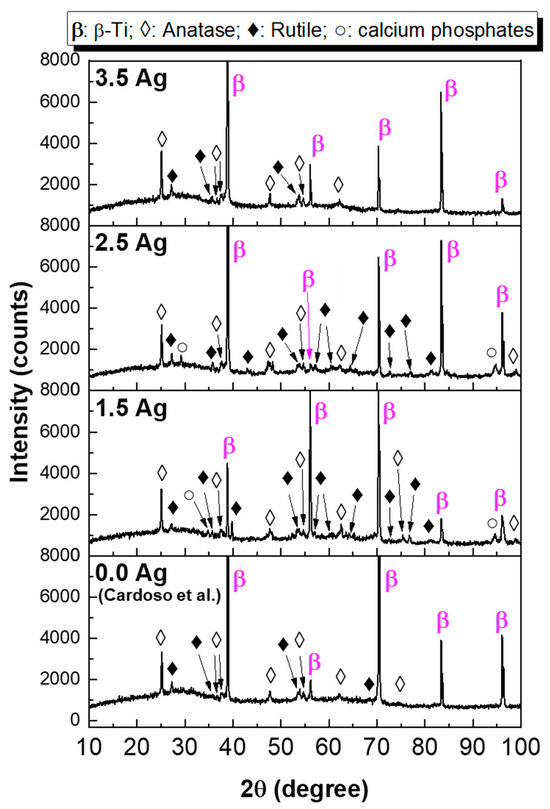 - Kuroda, P.A.B.; Grandini, C.R.; Afonso, C.R.M. Surface Characterization of New β Ti-25Ta-Zr-Nb Alloys Modified by Micro-Arc Oxidation. Materials 2023, 16, 2352. [Google Scholar] [CrossRef]