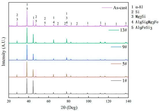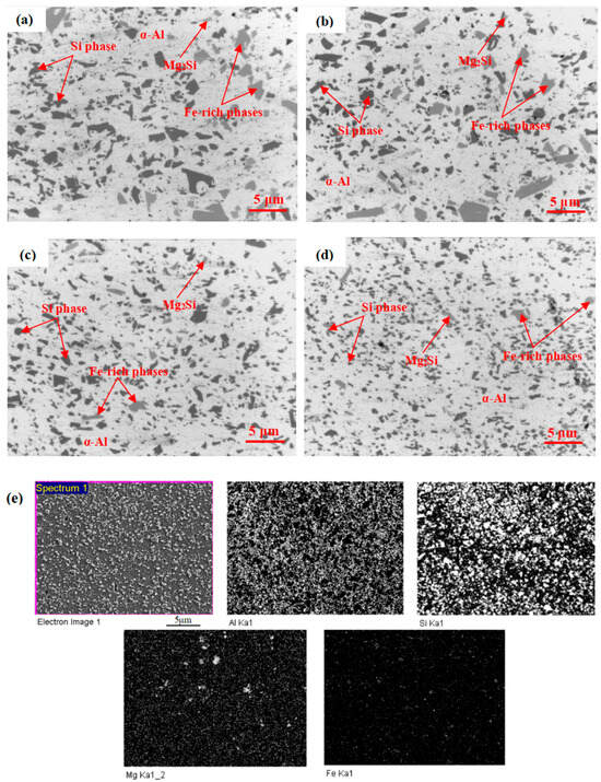 - Li, Q.; Qiu, F.; Dong, B.X.; Yang, H.Y.; Shu, S.L.; Zha, M.; Jiang, Q.C. Investigation of the influences of ternary Mg addition on the solidification microstructure and mechanical properties of as-cast Al–10Si alloys. Mater. Sci. Eng. A 2020, 798, 140247. [Google Scholar] [CrossRef]