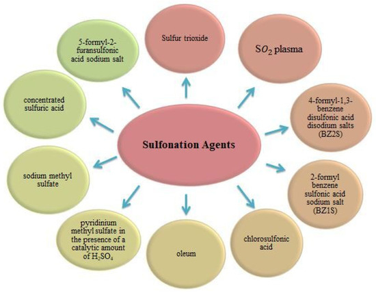 Depending on their structure, polymers of sulfonate and sulfate can be produced using various chemical agents. These agents include those shown in Figure 2.