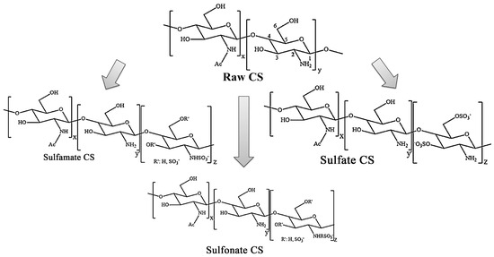 Chemical structure scheme of chitosan and its sulfonated derivatives [23].