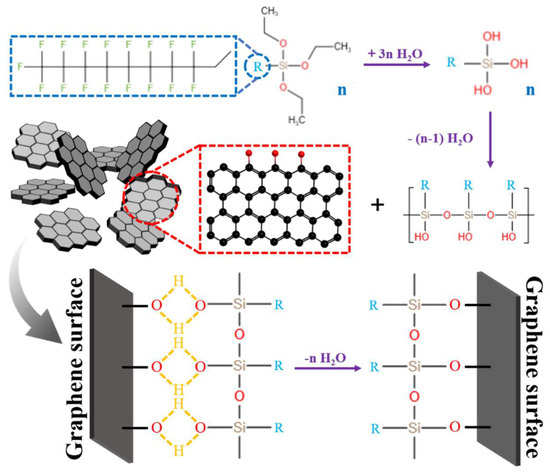 The surface modification mechanism of graphene nanosheets.