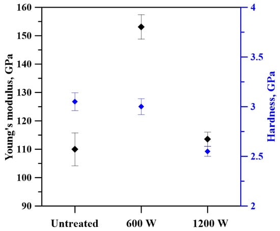 Young’s modulus and hardness of the untreated and treated specimens.
