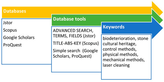 - Google Scholars and ProQuest, keywords biodeterioration, stone cultural heritage, control methods.