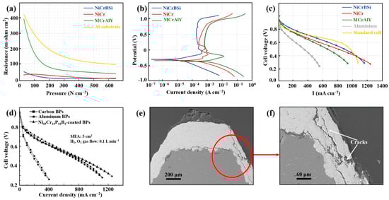 - Madadi, F.; Rezaeian, A.; Edris, H.; Zhiani, M. Improving performance in PEMFC by applying different coatings to metallic bipolar plates. Mater. Chem. Phys. 2019, 238, 121911. [Google Scholar] [CrossRef]